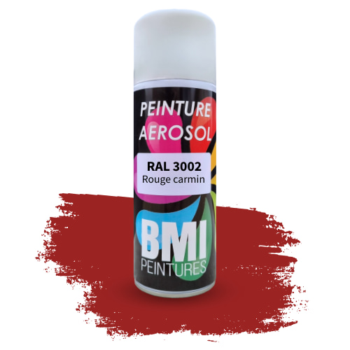 Peinture aérosol monocouche, RAL 3002 Rouge carmin anticorrosion, à séchage rapide et avec une bonne résistance aux intempéries.