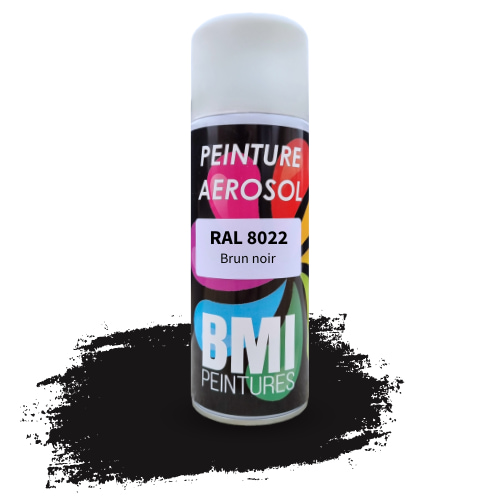Peinture aérosol monocouche, RAL 8022 Brun noir, à séchage rapide et avec une bonne résistance aux intempéries.
