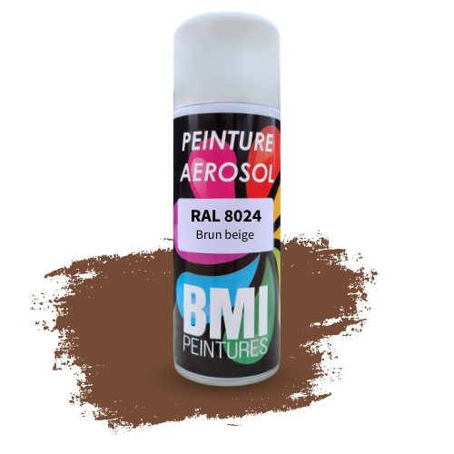 Peinture aérosol monocouche, RAL 8024 Brun beige, à séchage rapide et avec une bonne résistance aux intempéries.