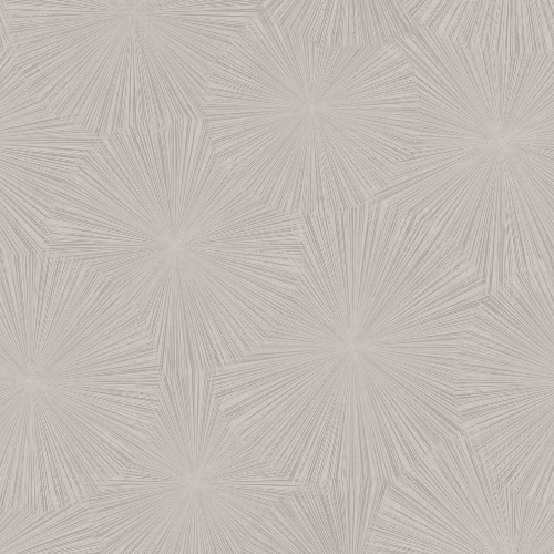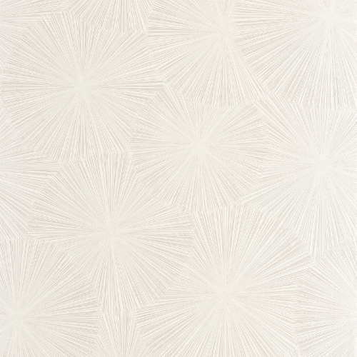 Papier peint Casadeco Hélios, un motif rayonnant évoquant soleils ou feux d’artifice, dans une palette lumineuse du blanc craie au bleu encre.